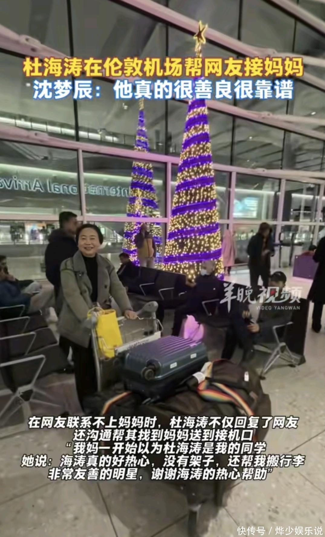 后来网友联系不上妈妈,急得像热锅上的蚂蚁,杜海涛不光回复,还真就帮忙在机场找,最后把阿姨送到了接机口。阿姨一开始还以为杜海涛是自家孩子的同学,一个劲儿夸他热心,没架子,还帮着搬行李,说他是非常友善的明星。